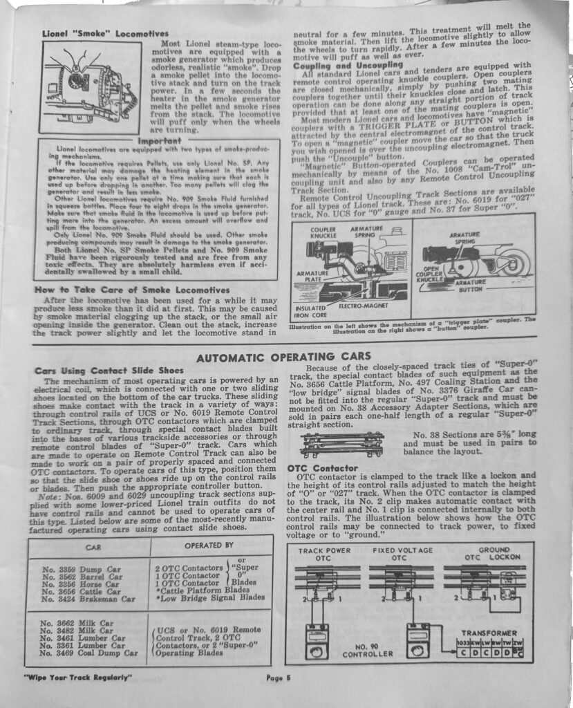 1952 INSTRUCTIONS FOR ASSEMBLING AND OPERATING LIONEL TRAINS