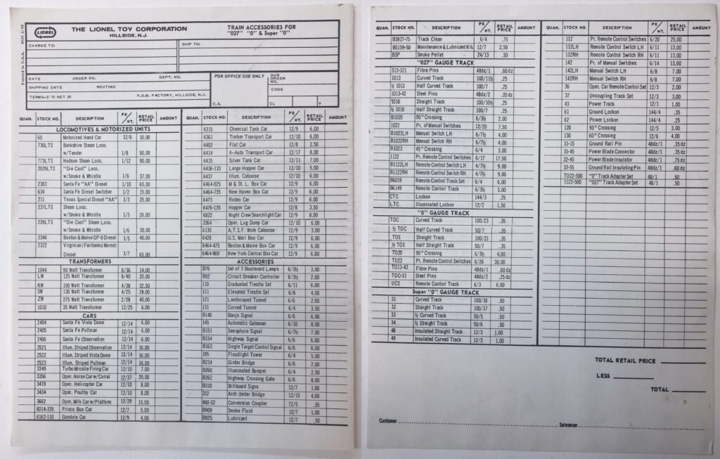 LIONEL’S FORM No. 632 OUTFIT # 2129 WS