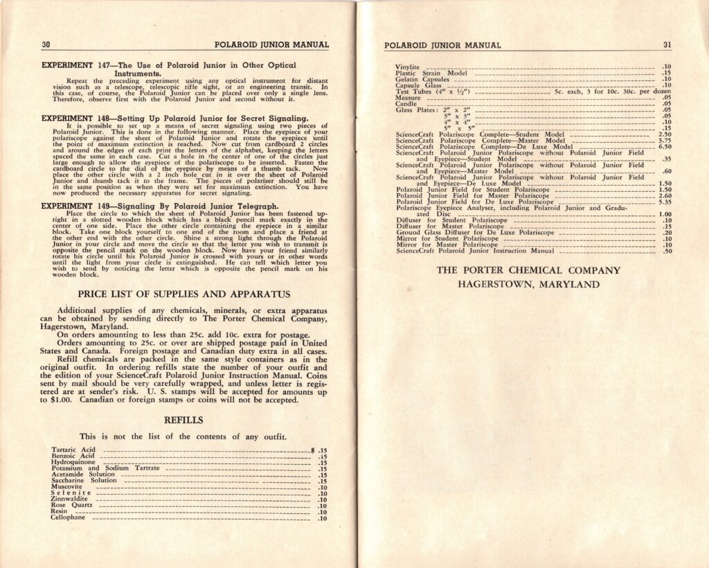No. 803 SCIENCE CRAFT POLAROID JUNIOR OUTFIT 1937