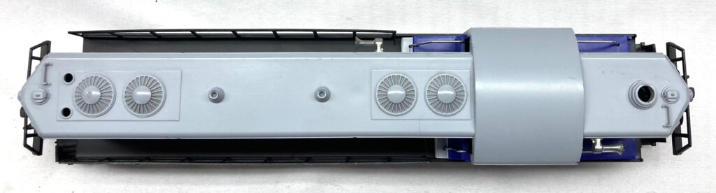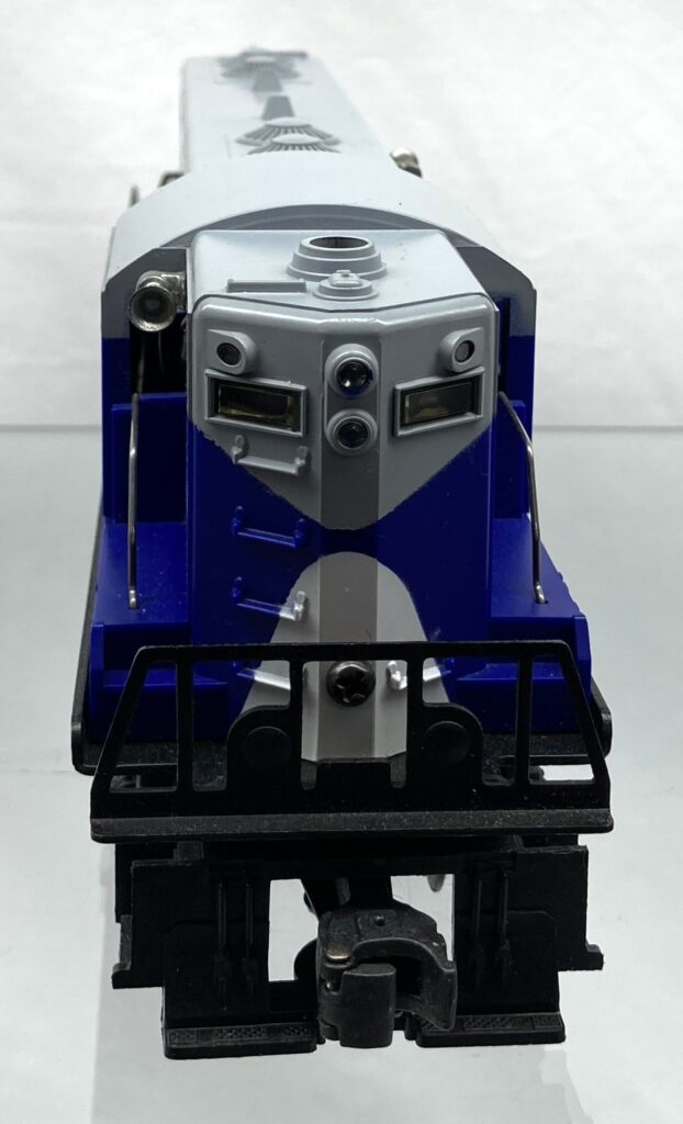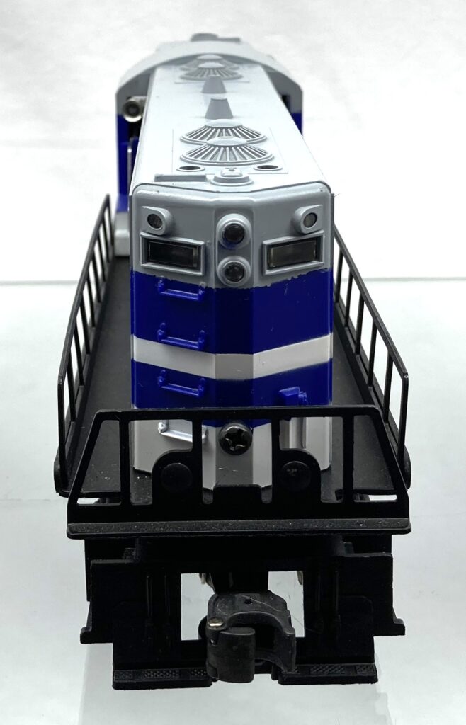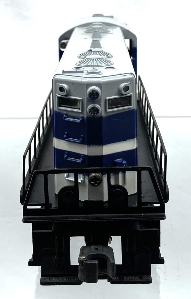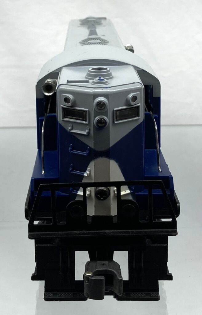 gray shell painted blue, black and white with white and black lettering on cab sides and logo on sides DE0108