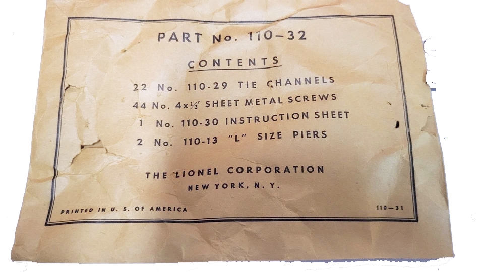 PART No. 110-32 GRADUATED TRESTLE SET PARTS