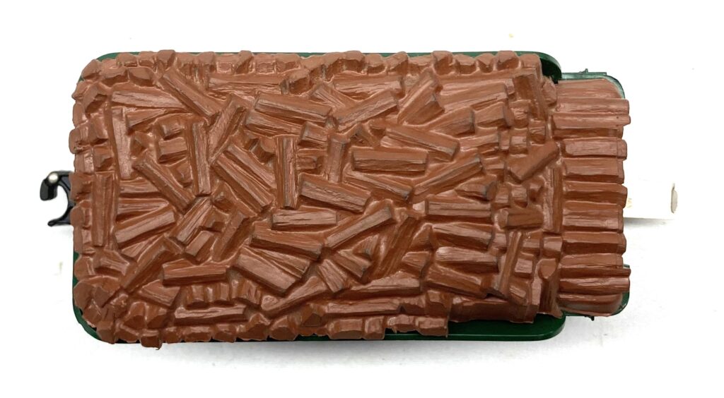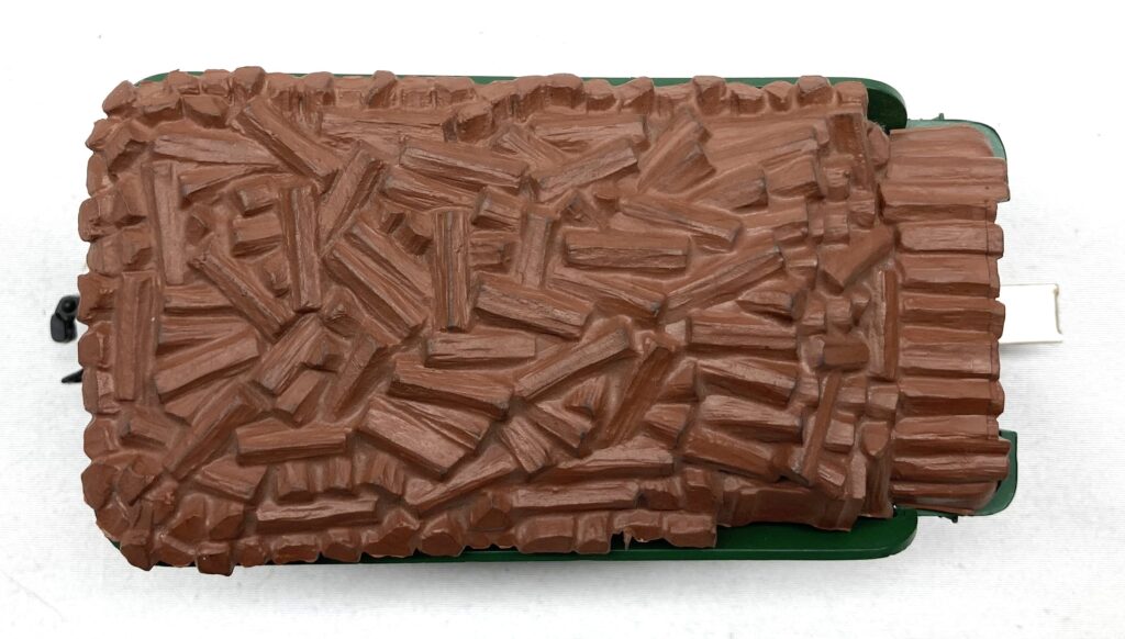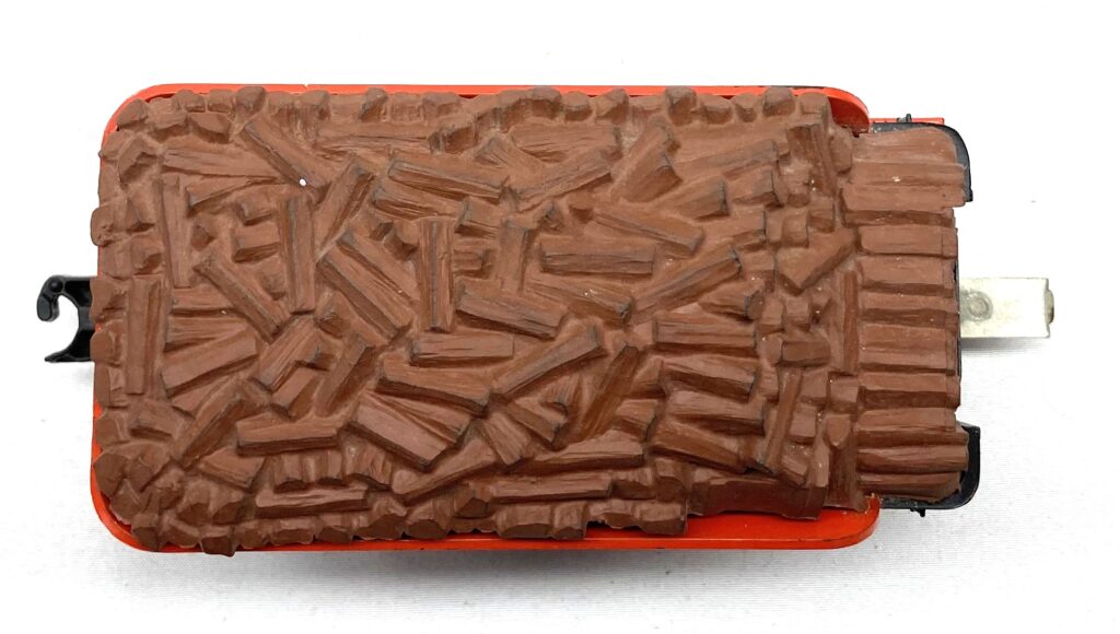 unpainted black plastic shell painted orange with gold heat stamped lettering