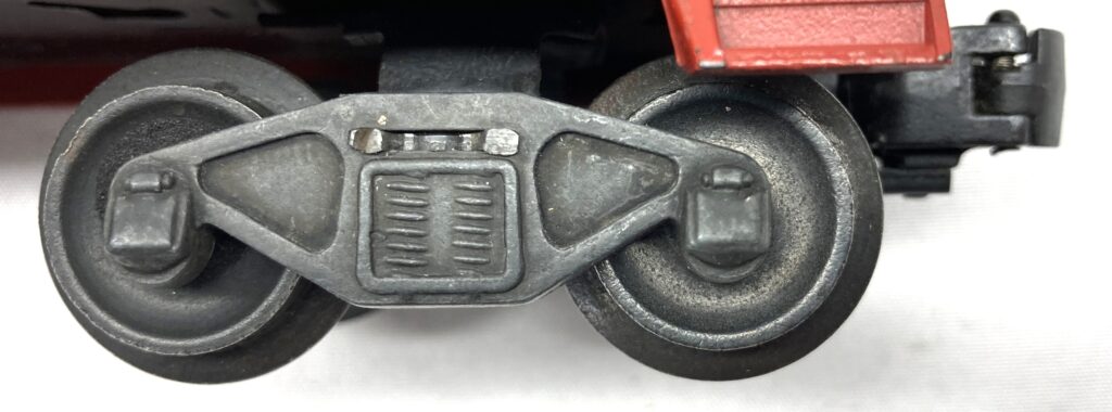 The production year of a car can often be determined by the trucks. However caution should taken as trucks and components can easily be replaced. Additionally Lionel sometimes used earlier trucks on later production bodies to meet production demands.