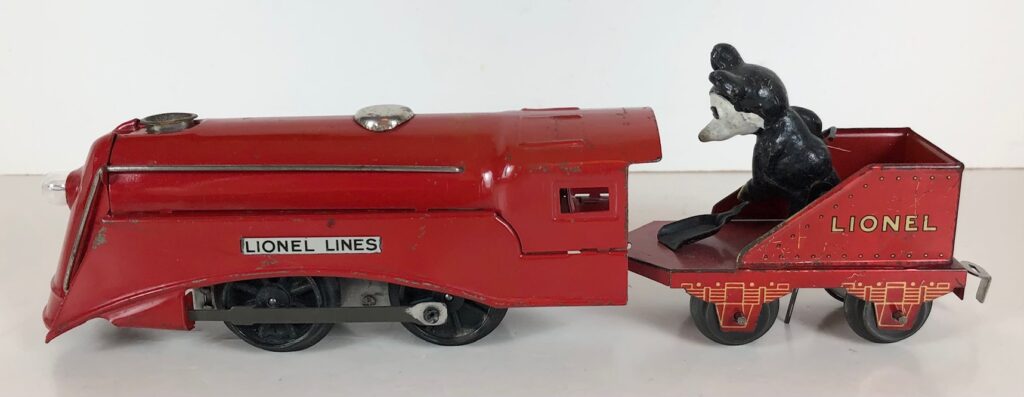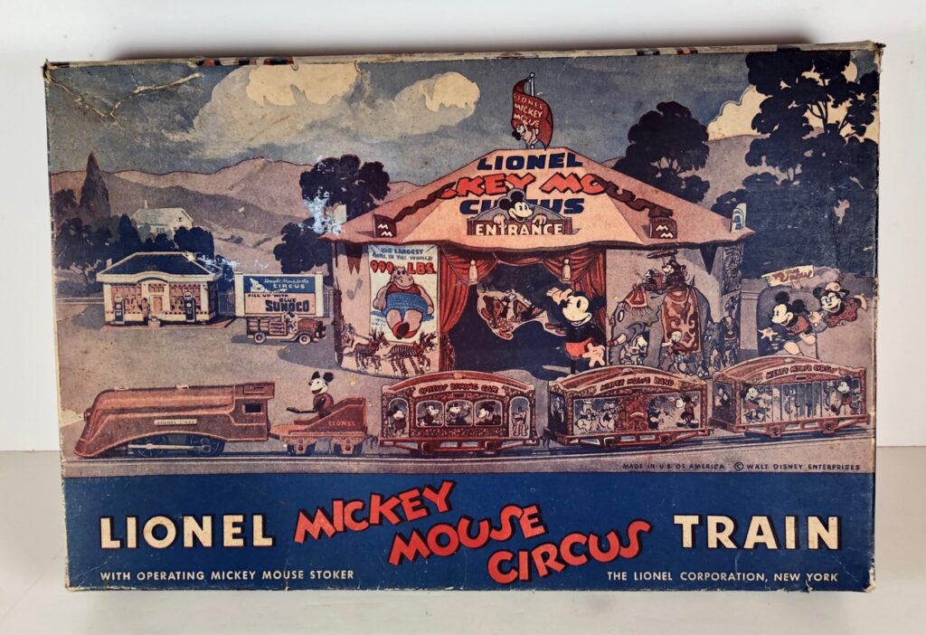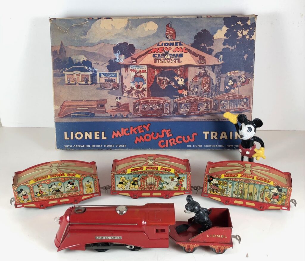 The Lionel No. 1536 Mickey Mouse Circus Set was available for one year only in 1935. The Mickey Mouse Circus Set featured a Mickey Mouse Circus Train. The train set was comprised of a No. 1508 Commodore Vanderbilt-Style Steam Engine with a No. 1509 Mickey Mouse Tender and three Circus Cars. The tender included a Mickey Mouse figure shoveling coal. The Circus Cars were not numbered, but included a Dining Car, a Band Car, and an Animal Car.