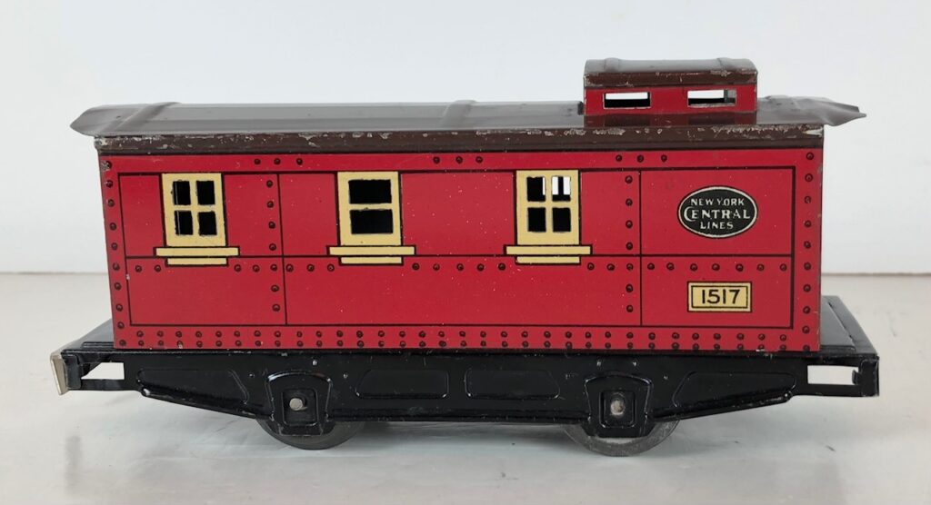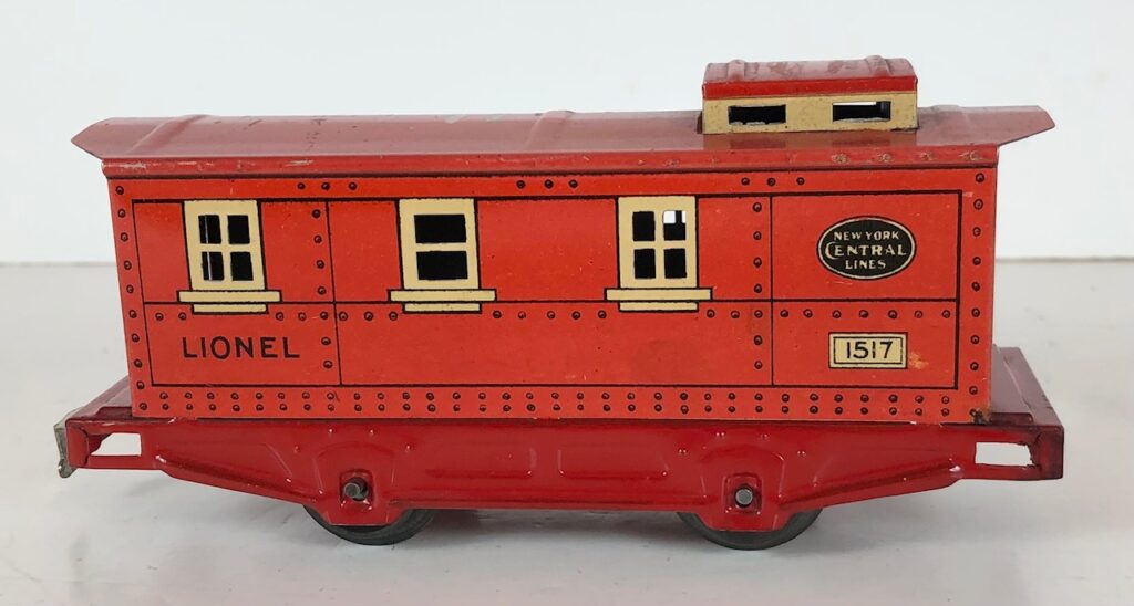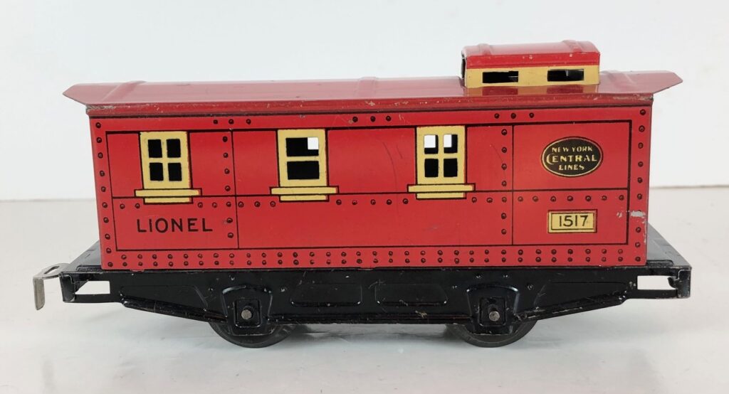 4. No. 1517 New York Central “Lionel” Caboose in red litho with cream windows, red roof, cream cupola and black frame (1935).