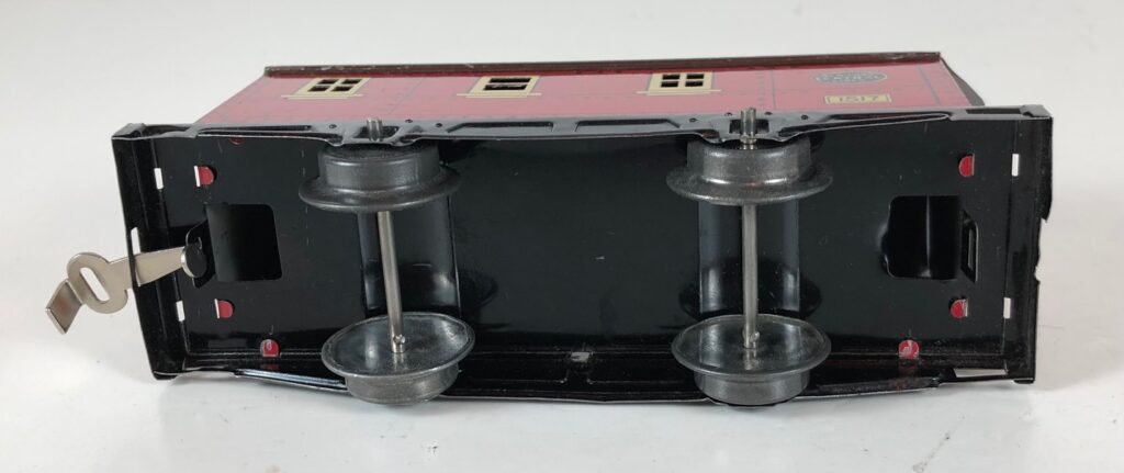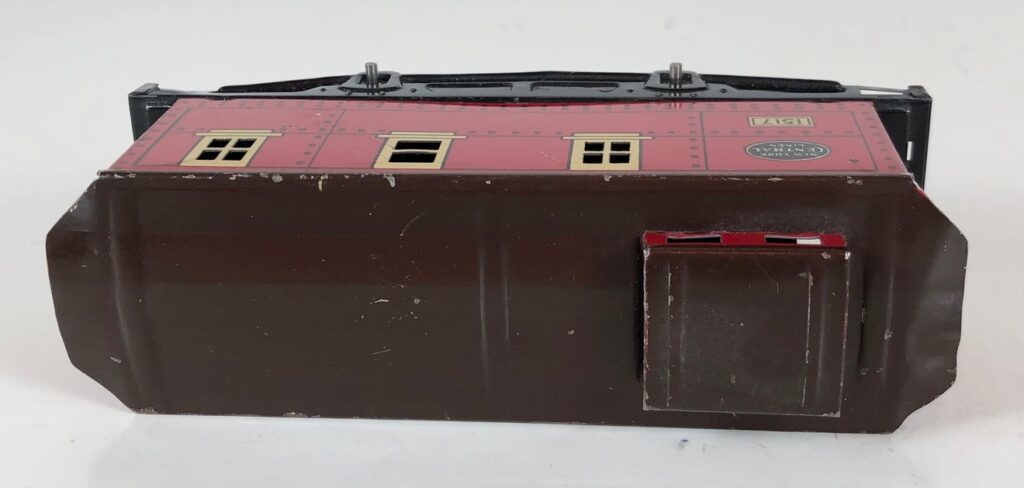 2. No. 1517 New York Central “Lionel” Caboose in red litho with cream windows, brown roof, red cupola and black frame (1934).
