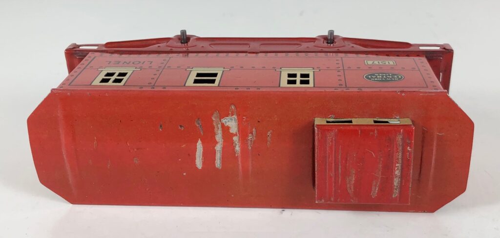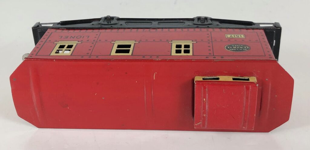 6. No. 1517 New York Central “Lionel” Caboose in red litho with cream windows, red roof, red cupola and red frame (-1937).