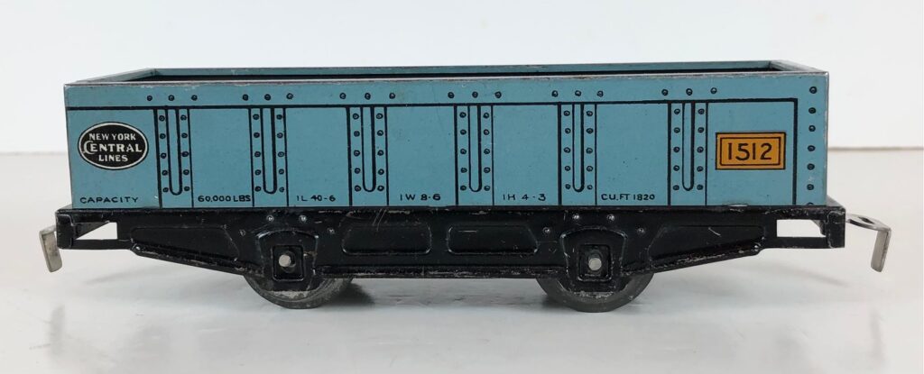1. No. 1512 New York Central Gondola Car in blue litho with black frame (1931-1933).