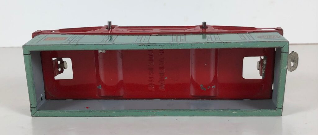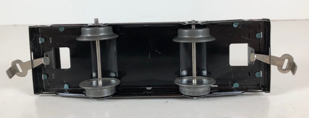 Variations of the No. 1512 Gondola Cars include different colors of litho on the body and frame color. Early gondolas have a blue litho body and a black frame. Later gondolas have a green litho body and a red frame.