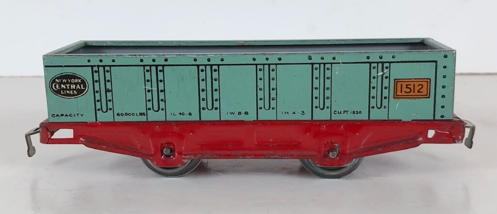 2. No. 1512 New York Central Gondola Car in green litho with red frame (1936-1937).