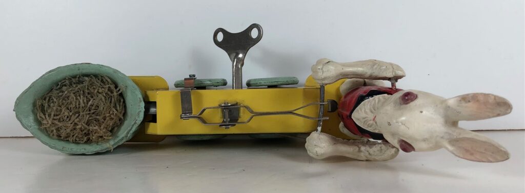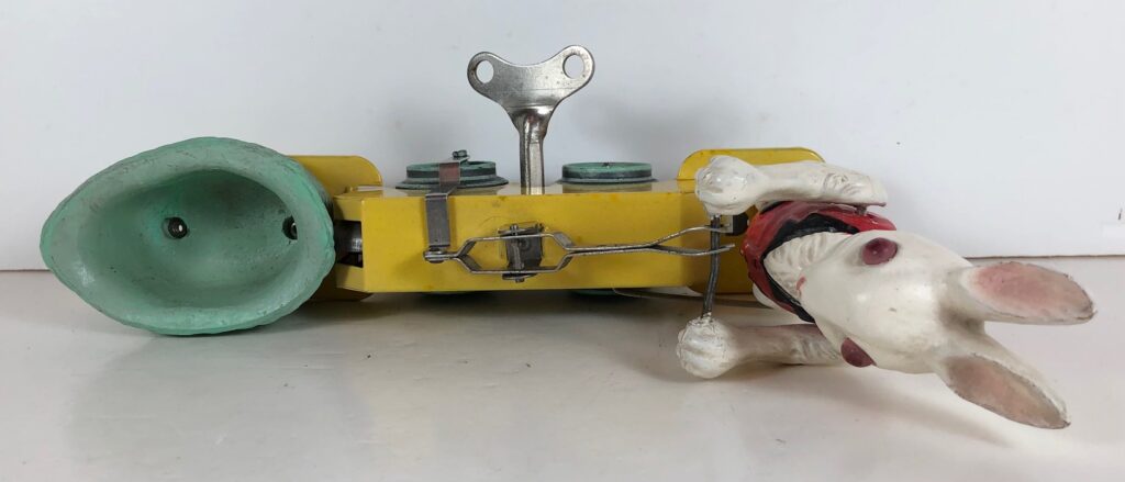 1. No. 1103 Peter Rabbit Chick-Mobile with flanged wheels (1936-1937).