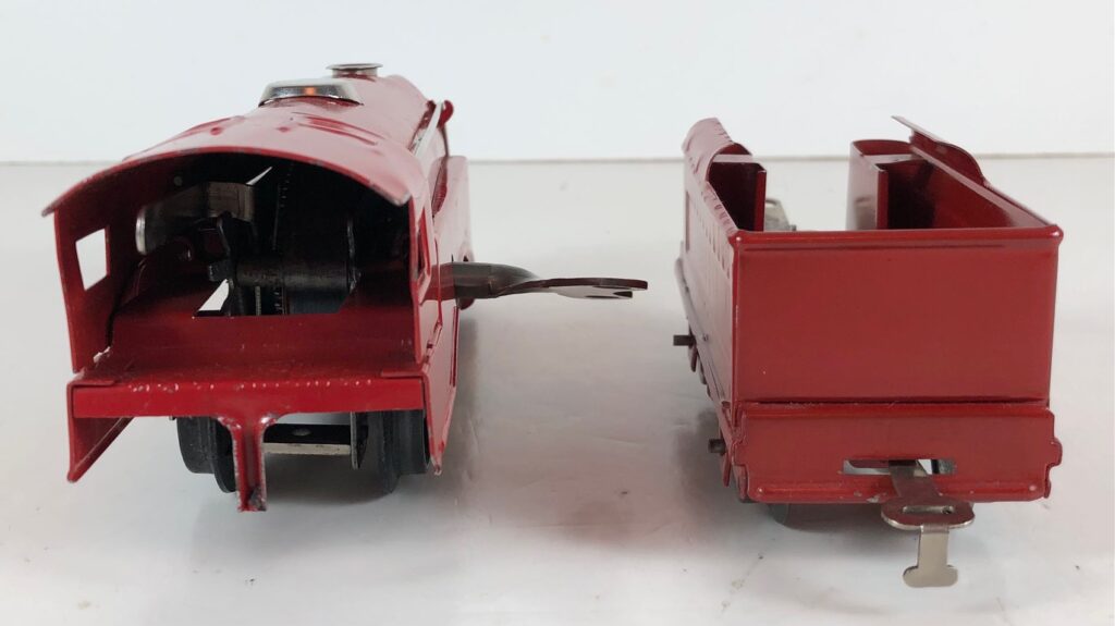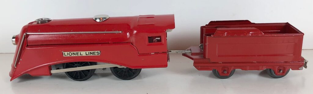 Lionel also issued a No. 1508X Commodore Vanderbilt Steam Locomotive in 1935. This locomotive was similar to the No. 1508, but was painted black instead of red. The No. 1508X Steam Engine is always paired with the No. 1502T Lionel Lines 4-Wheel Tender. The No. 1502T Tender was lithographed in black with “Lionel Lines” in yellow lettering on the sides.