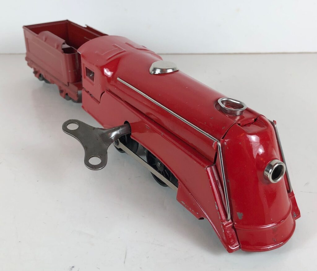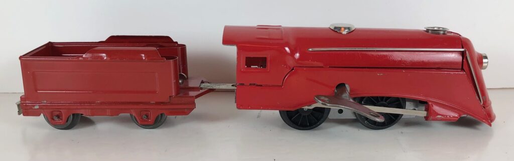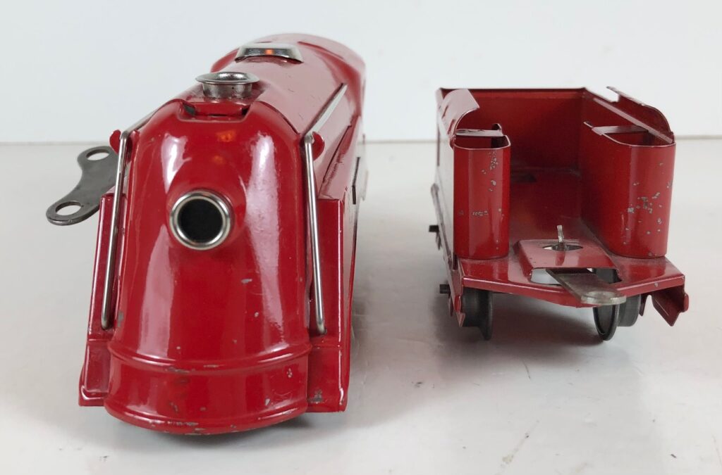 3. No. 1508 / 1509 0-4-0 Commodore Vanderbilt Steam Locomotive in red (1935). The locomotive has a bell, but does not have an operating headlight. This is an uncataloged locomotive.