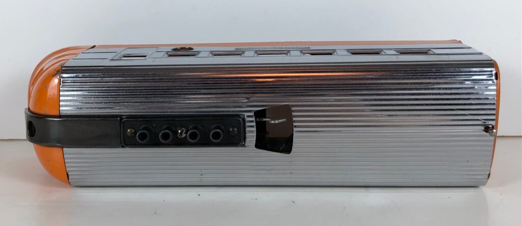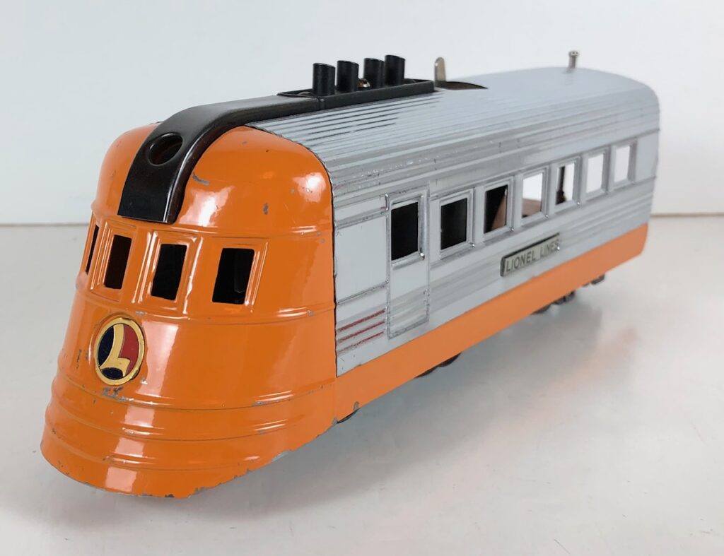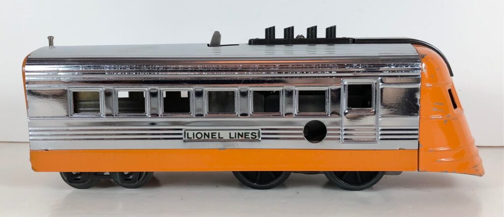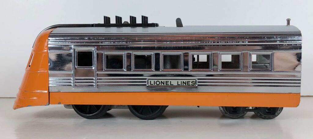 2. No. 1816 Streamlined Locomotive in orange and chrome with operating whistle and an aluminum circle “L” plate (1936-1937).