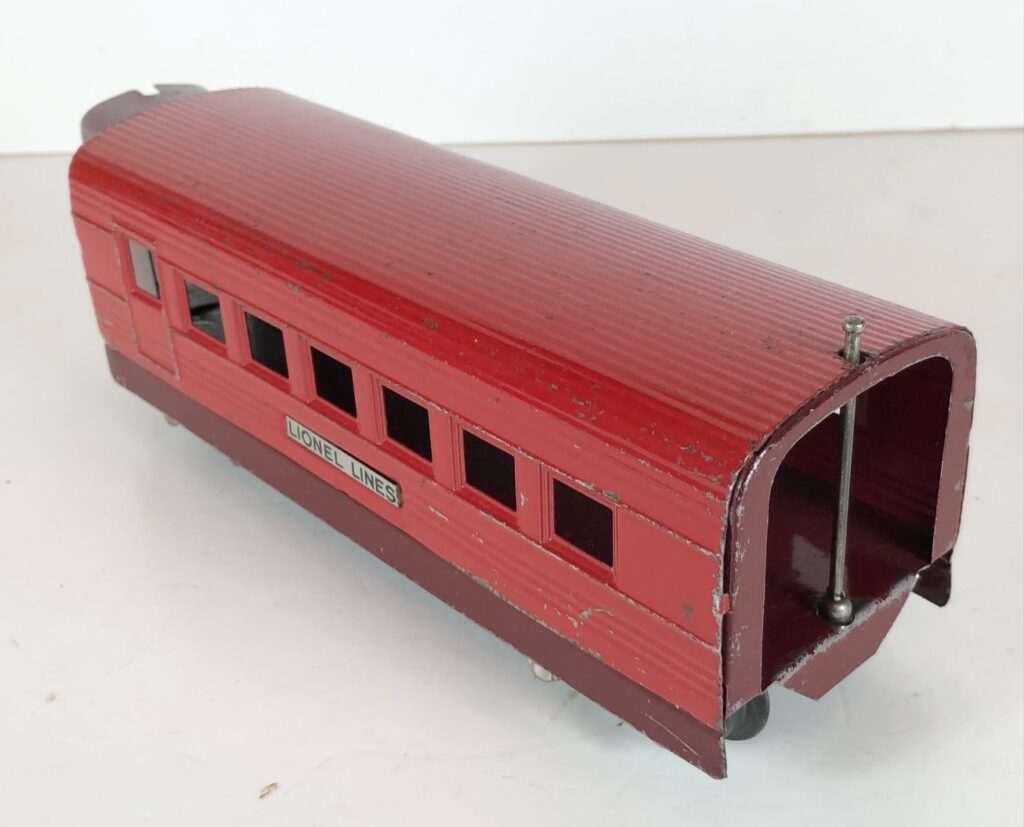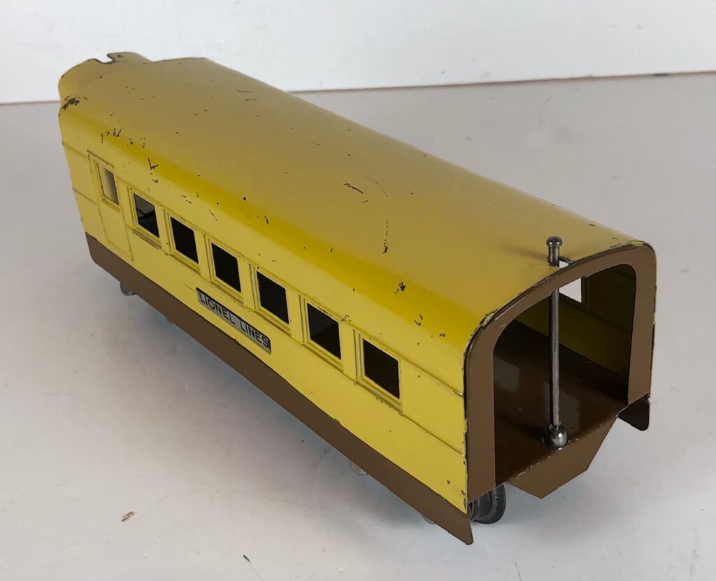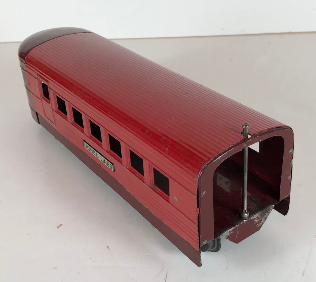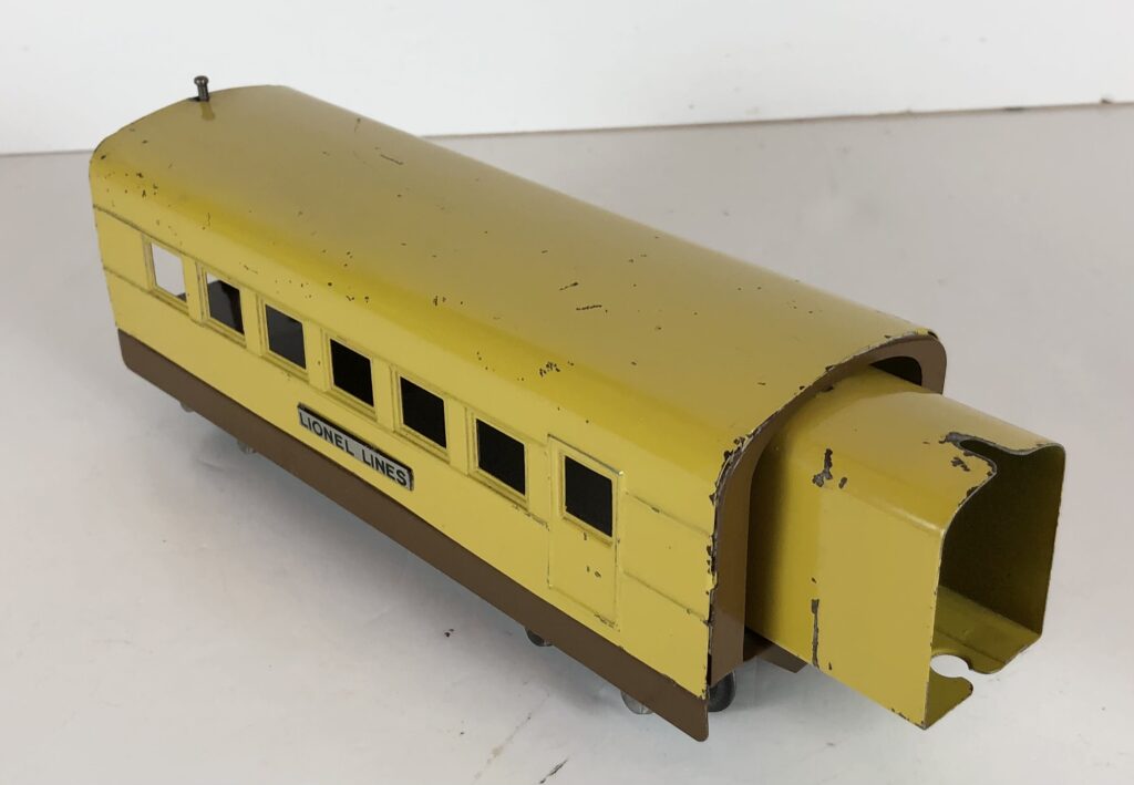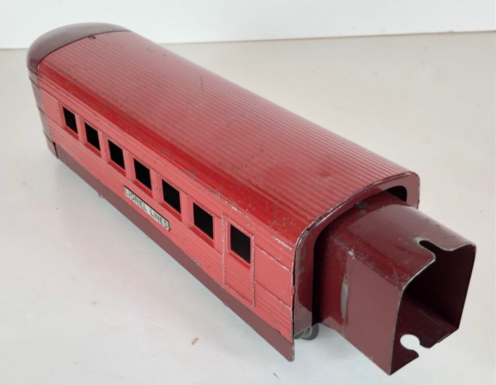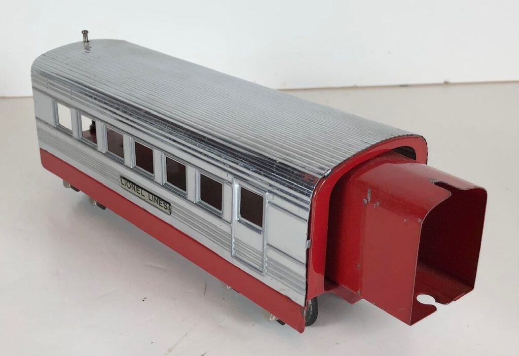 The Lionel No. 1701 Streamlined Coach, No. 1702 Streamlined Observation, and No. 1703 Streamlined Front End Streamlined Coach Passenger Cars were introduced in 1935 and were issued through 1937.  The Nos. 1701, 1702 and 1703 Streamlined Passenger Cars were included in Lionel Junior low end sets.  They were typically paired with Lionel No. 1700(E) Streamlined Locomotives, but they were also offered with several low end steam locomotives.  They were also included in a number of uncataloged or “Special” sets.
