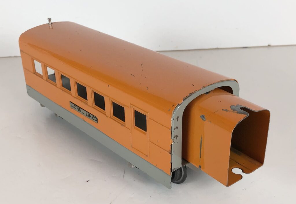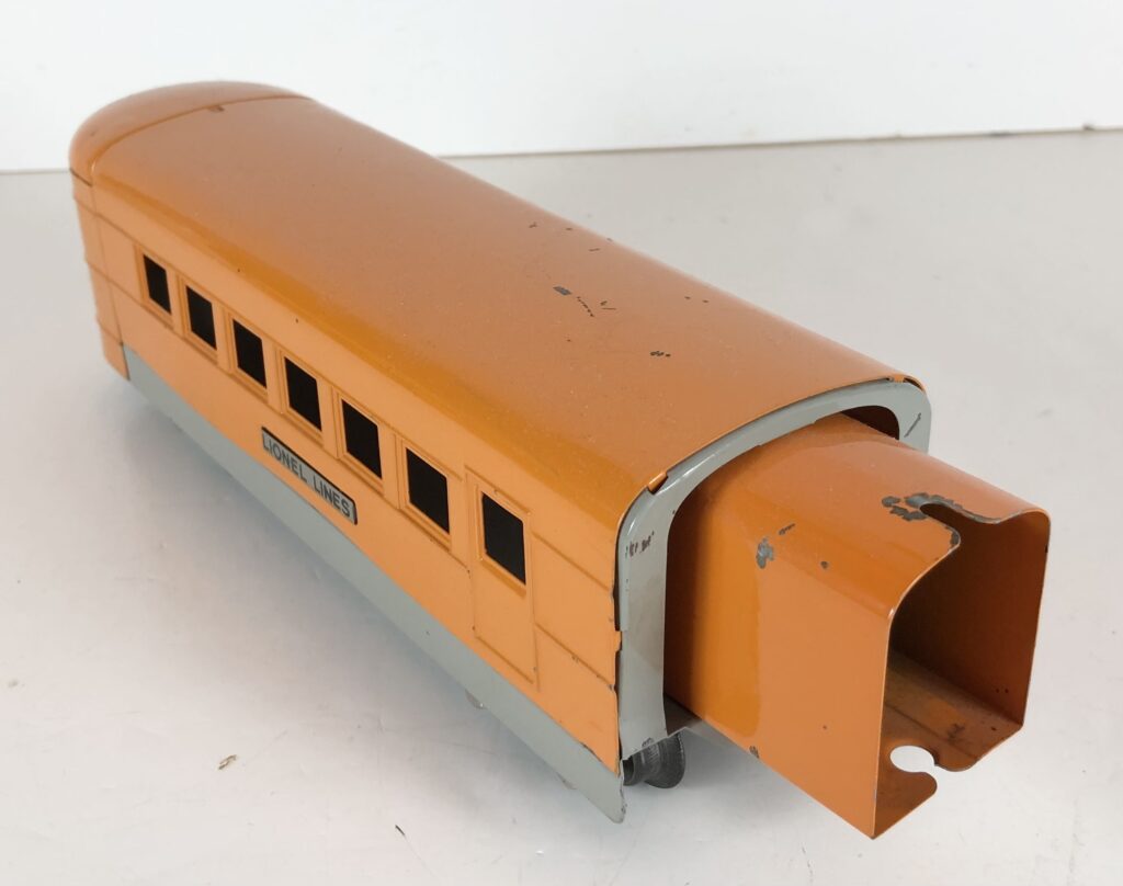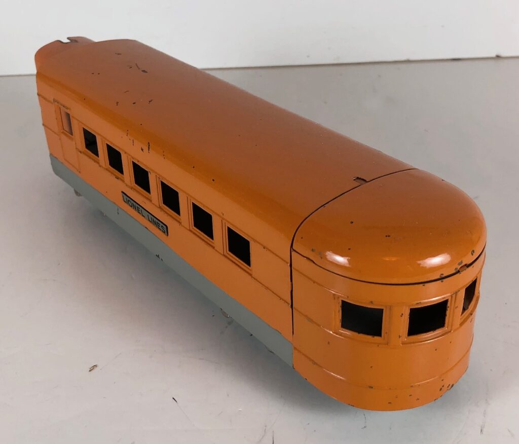 8. No. 1701 Streamlined Coach in orange and gray with smooth sides.