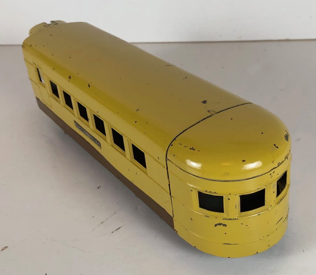 10. No. 1701 Streamlined Coach in yellow and brown with smooth sides.