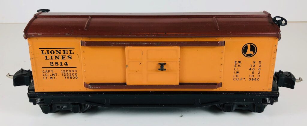 - No. 2814 Box Car in orange with Tuscan brown roof (1941-1942). The cars have rubber stamped lettering, black trim and black journals. The cars have late style operating box couplers.