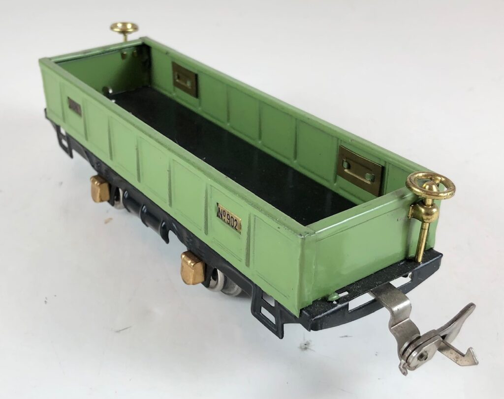 5. No. 902 Gondola Car in apple green (1934). The cars have nickel journals.