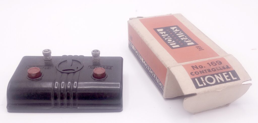 It was used for powering toy oil derricks, Ferris Wheels, carousels, other early toys, as well as small shop equipment. The black base measures about 5″ long, 2 1/4″ wide, and 2 1/4″ high. This is a very early Lionel accessory and sold for $2.50!