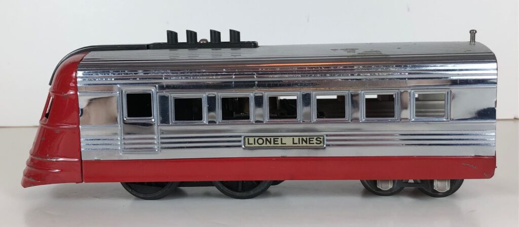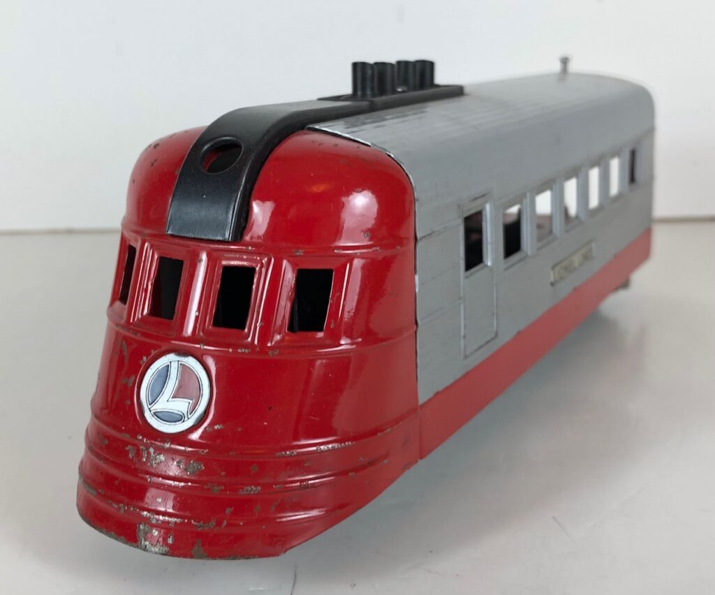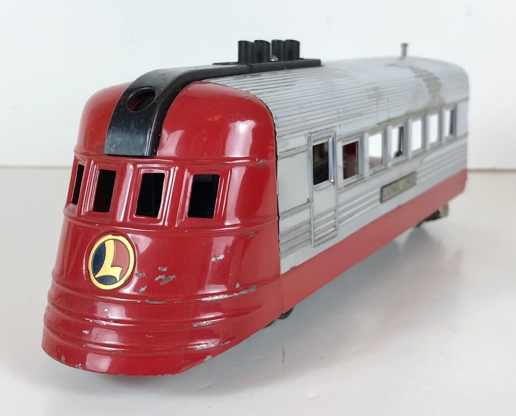 The No. 1700(E) Streamlined Locomotive measures 9 1/2-inches in length. All have a single headlight. The No. 1700(E) Streamlined Locomotives and Streamlined Coaches are not articulated as the locomotive and cars each have two complete trucks. However, the locomotive and cars have connecting vestibules to give the train a streamlined appearance. The locomotives never came with a manual reverse unit. The locomotives either have an “E” Unit reverse (No. 1700E) or no reverse (No. 1700).