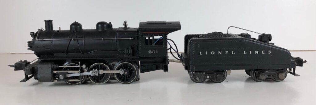 1. No. 201 / 2201B Lionel Lines 0-6-0 Steam Switcher (1940-1942). The locomotive was equipped with the “Magic Electrol” reversing unit and had an operating bell in the tender. When not equipped with a bell, the locomotive was designated as No. 201 / 2201T.