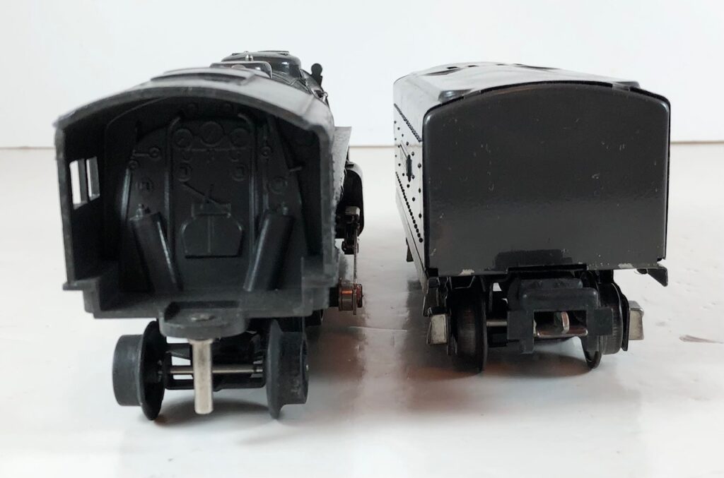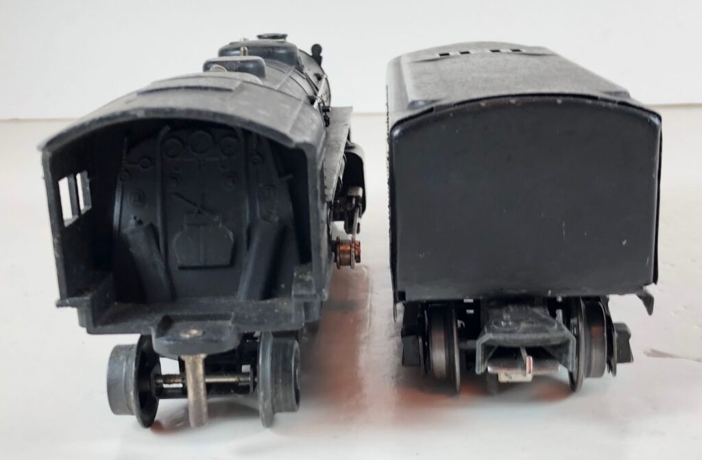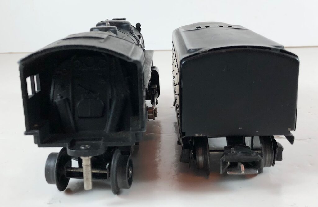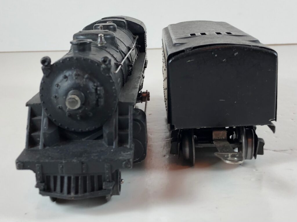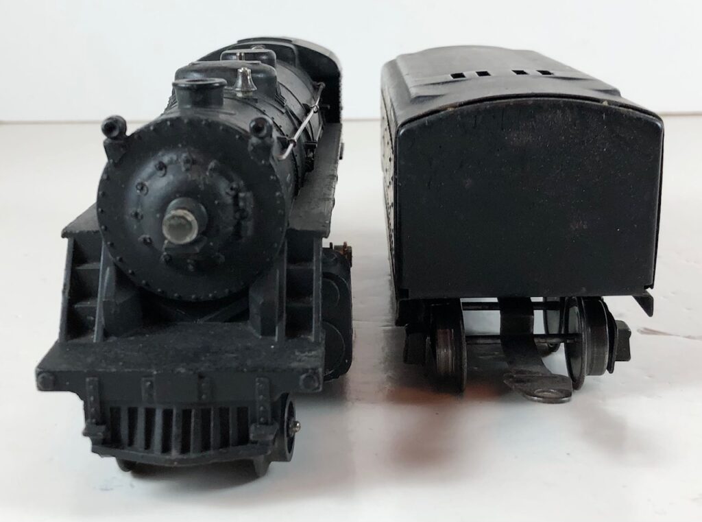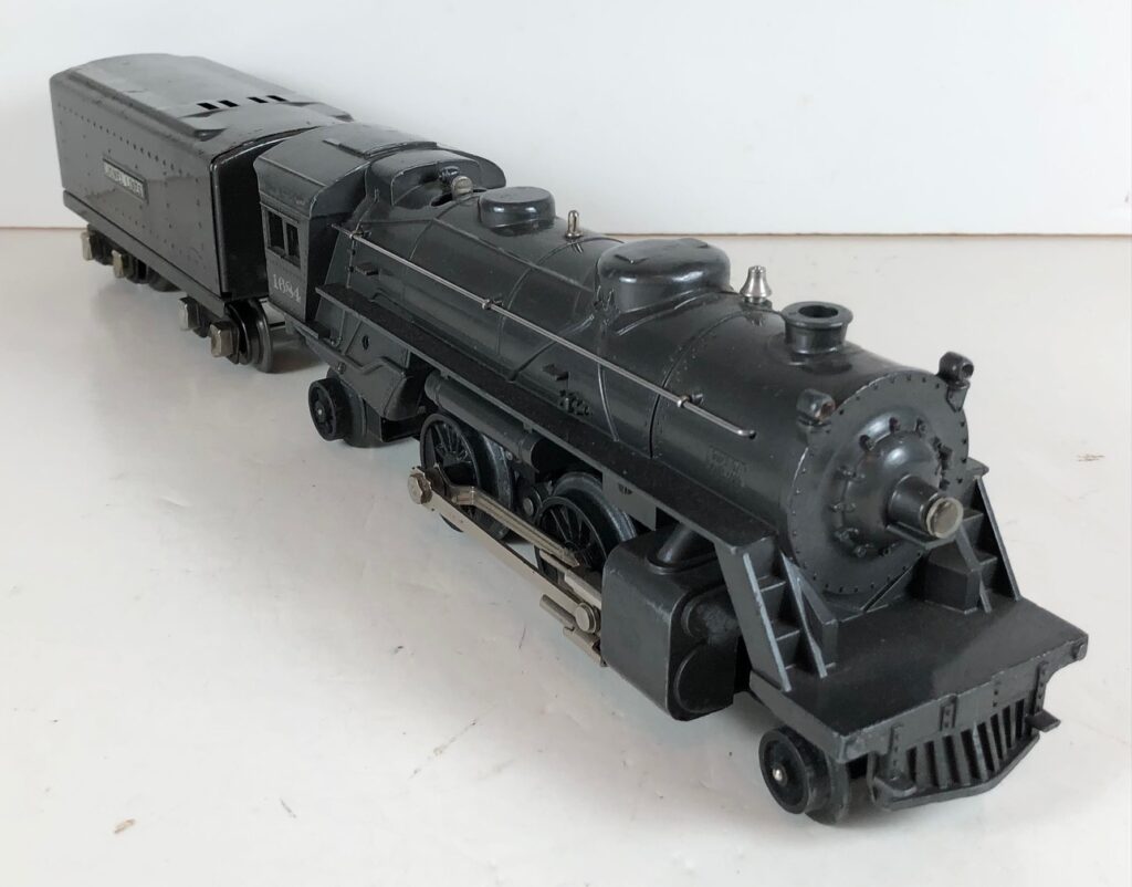 3. No. 1684 / 2689W 2-4-2 Steam Locomotive in black with nickel trim and rubber stamped number on the sides of the cab (1940-1941). The No. 2689W Tender is black with rubber-stamped lettering on the sides of the tender. The tender has black journals and a late style operating box coupler.