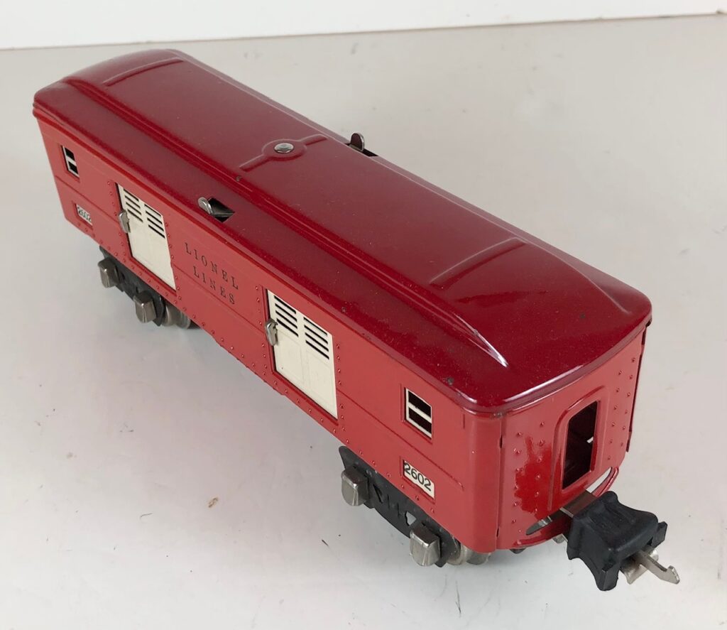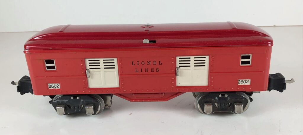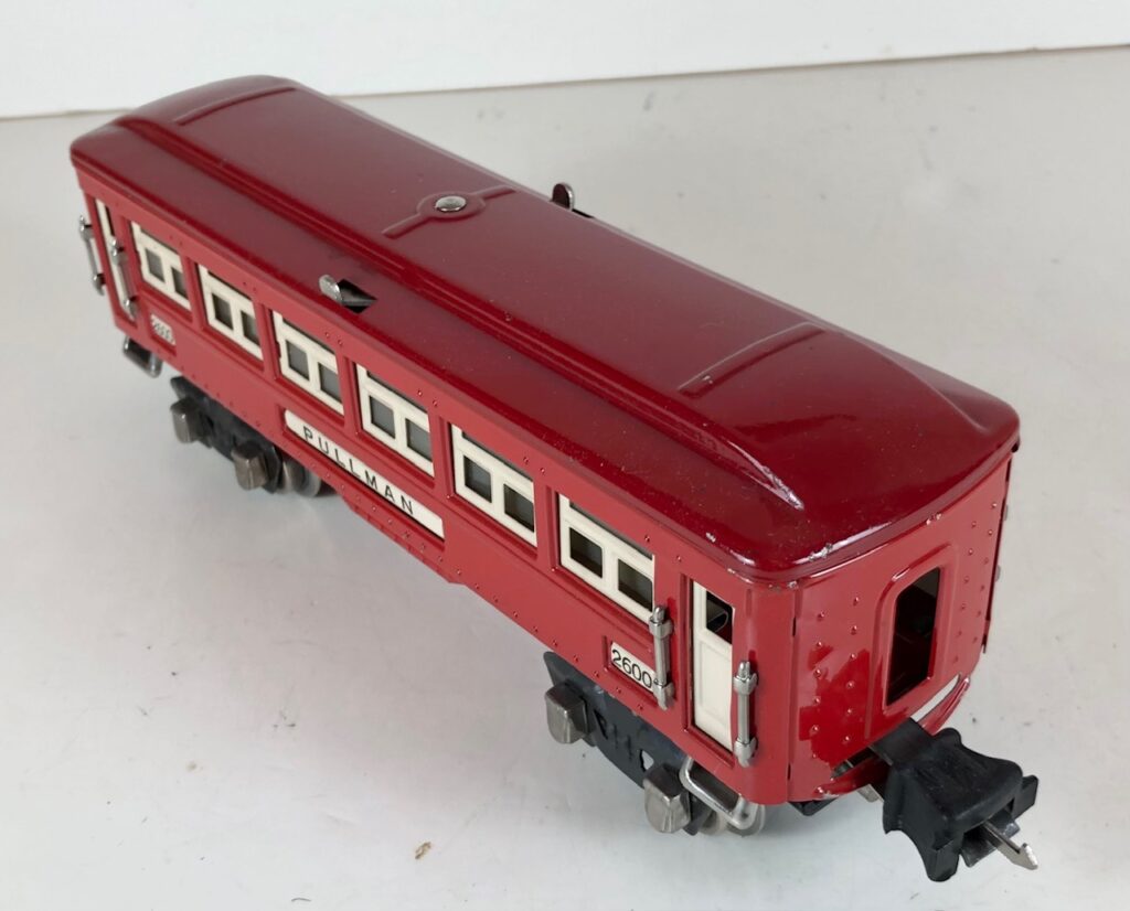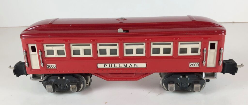 The Lionel No. 2600 Pullman, No. 2601 Observation, and No. 2602 Baggage Passenger Cars were introduced in 1938 and were issued through 1942. The No. 2600, No. 2601, and No. 2602 were medium sized passenger cars and shared the same body with the No. 600, No. 601, and No. 602 passenger cars all issued by Lionel following the Classic Period. These passenger cars were included as components of a number of mid-range cataloged passenger sets. The cars in the second listing, below, were included in two uncataloged sets.