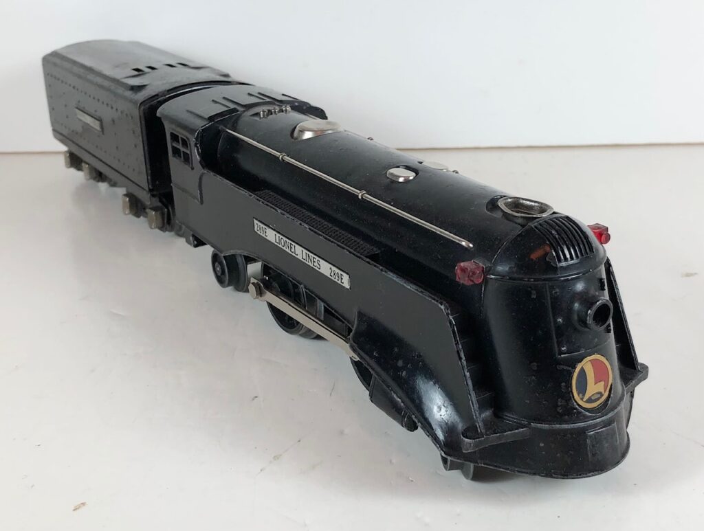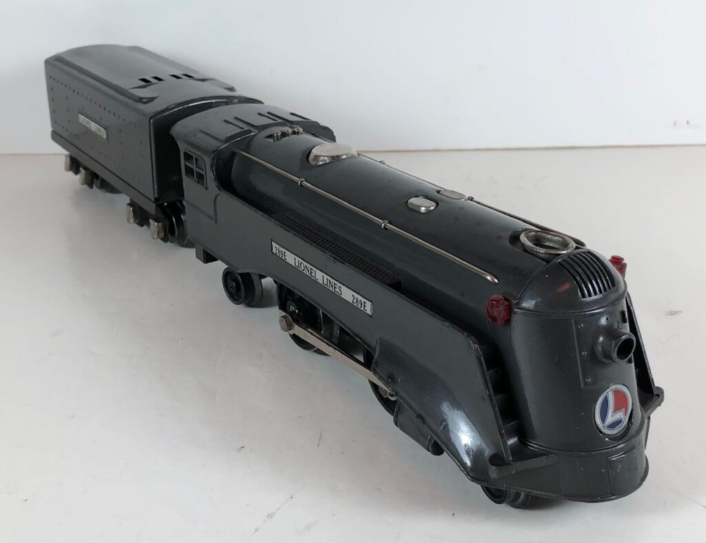The Lionel No. 289E 2-4-2 “Commodore Vanderbilt” Steam Locomotive was introduced in 1936 and was issued through 1937. The No. 289E Locomotive was only included in uncatloged sets during this period. The locomotive was included as a component of one passenger set and three freight sets. The locomotive was loosely based on the New York Central “Commodore Vanderbilt” streamlined steam locomotive used for the Twentieth Century Limited. The No. 289E Steam Locomotive utilized a one piece diecast body.