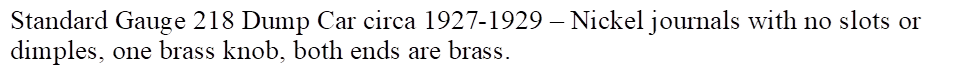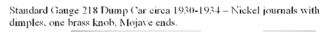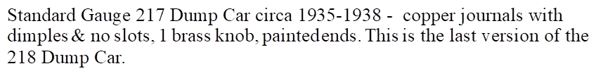 STANDARD GAUGE 200 SERIES FREIGHT CARS, DUMP CARS, No. 218